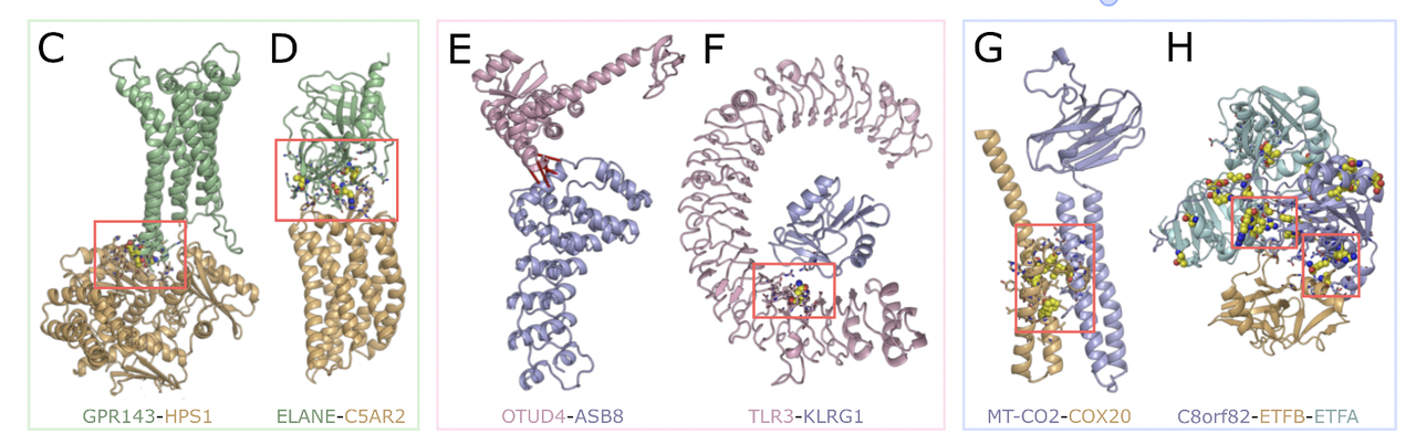 最后再用 AlphaFold2 精细建模,对最有可能互作的蛋白对进行结构层面的验证。