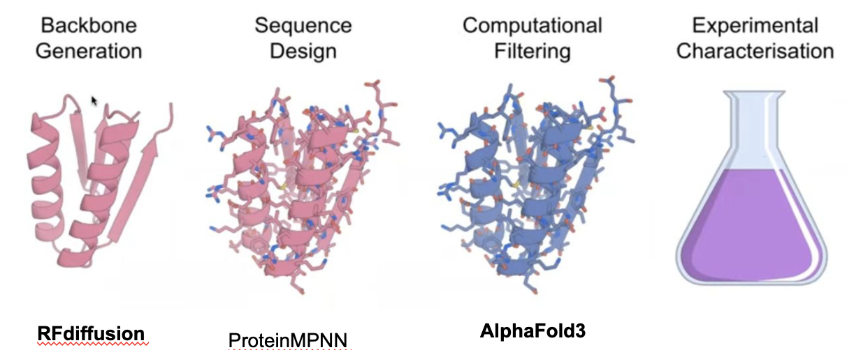 核心创新:RFdiffusion 扩散模型 → 在表位约束下直接生成定制化骨架。