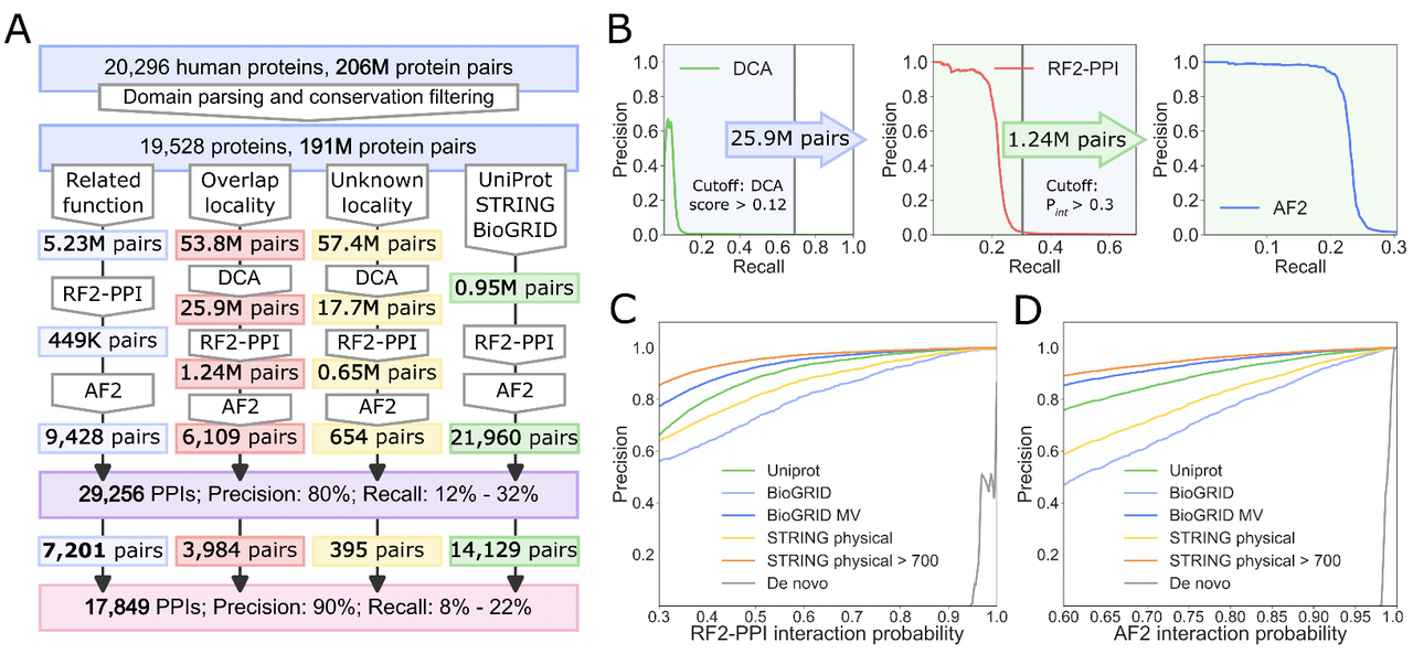 研究起始于 19,528个人类蛋白(AlphaFold数据库中有结构的条目),所有可能的组合约 1.91亿对。