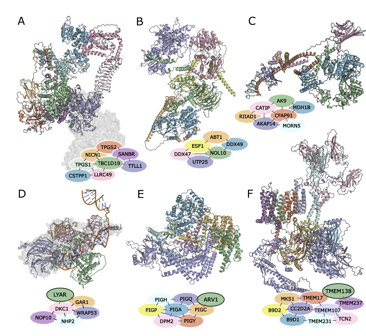 例如,微管相关的 Tubulin polyglutamylase(TPG)复合物 被预测新增了3个亚基(包括TBC1D19),而且这些新增亚基在结构上与已知催化亚基形成合理互作。