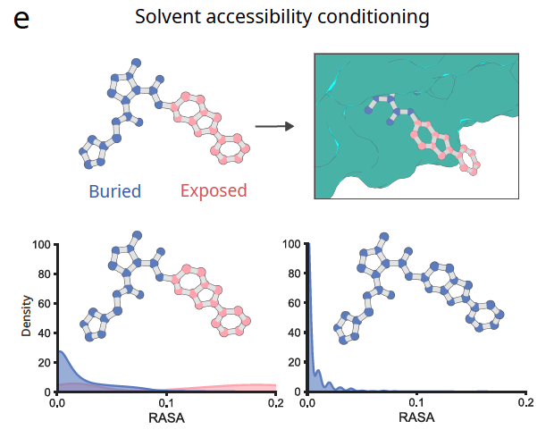 通过给出原子的溶剂可及性(RASA),模型可以决定某个小分子是否深埋在蛋白内部,或者暴露在表面。这为调节结合口袋的“开放”程度提供了直接手段。
