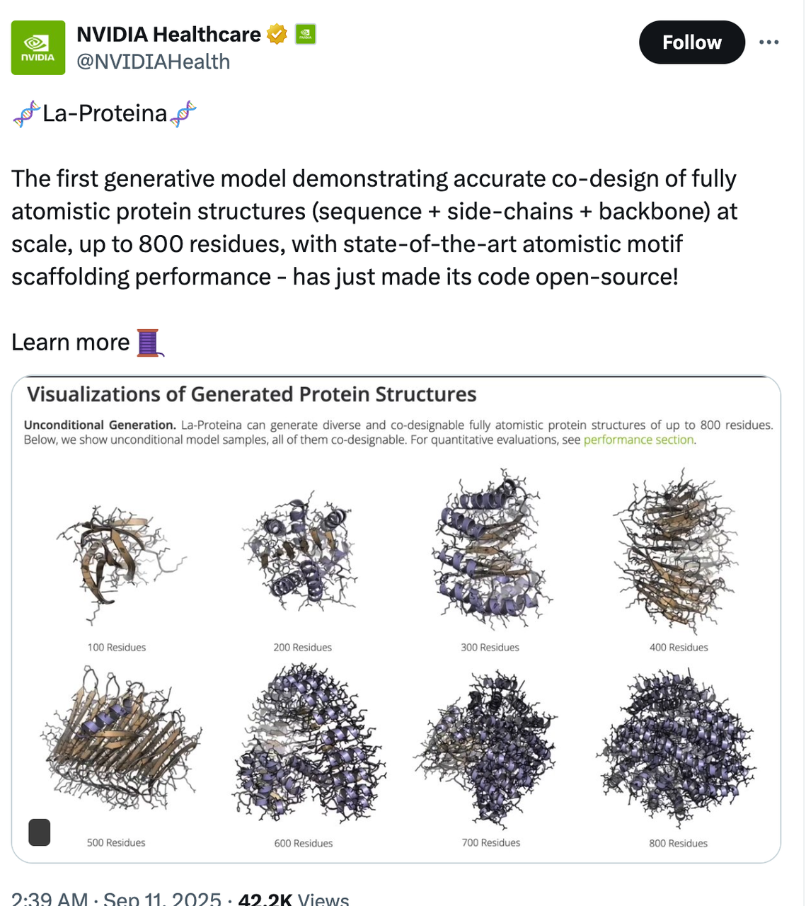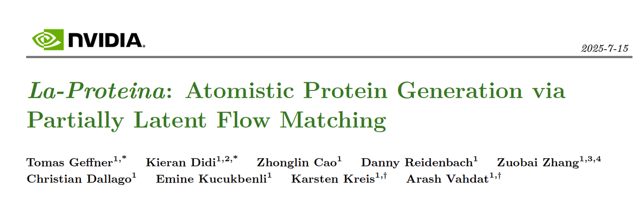 就在昨天, La-Proteina 正式开源了。这是 NVIDIA 团队提出的一种能够在 全原子层面生成蛋白质结构的模型。