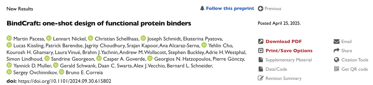 在蛋白结合剂开发中,传统方法往往依赖昂贵的实验筛选和结构信息,效率低、门槛高。BindCraft 的出现,为缺乏结构基础和筛选平台的实验室提供了一种“开箱即用”的解决方案,极大降低了蛋白设计的技术门槛,在免疫调节、变应原阻断、CRISPR干预等多个领域展现出广泛应用潜力。