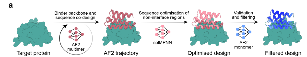 基于 AF2 网络的反向传播优化,首次实现结合剂“幻觉式”设计;