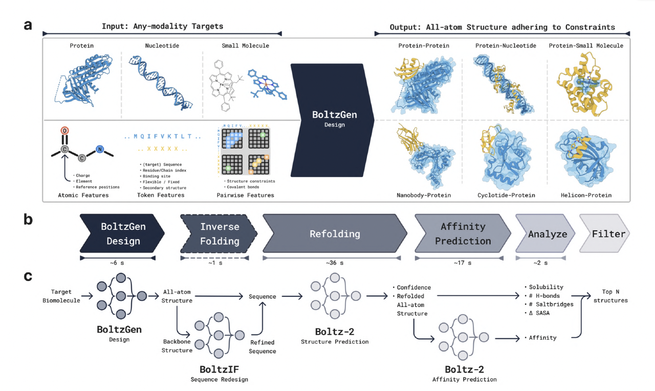 从 Boltz-1 的多模态预测,到 Boltz-2 的能量推理,再到如今的 BoltzGen ——