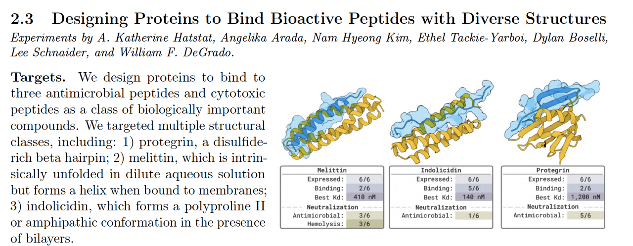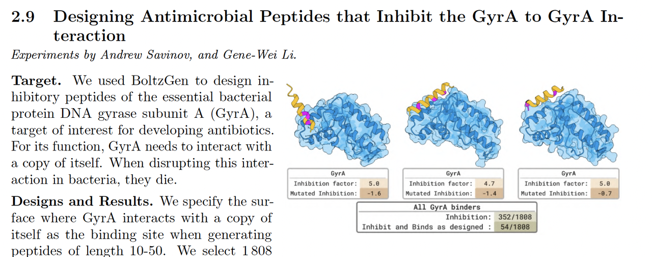 在最后一类实验中,作者验证了 BoltzGen 在抗菌肽设计任务中的表现。