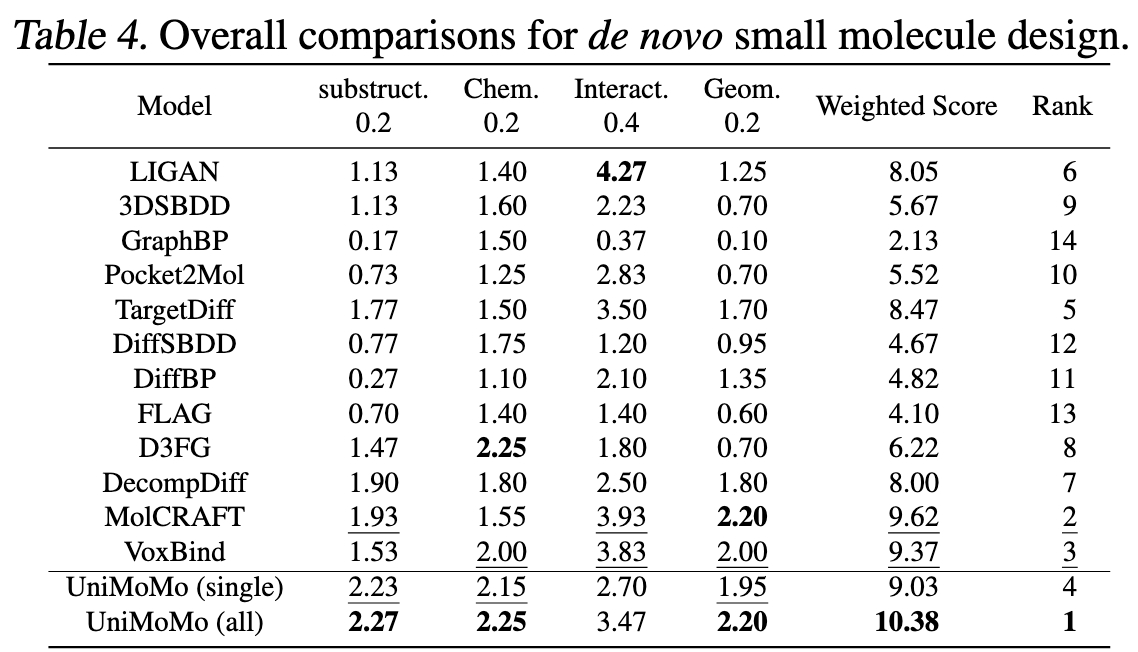 而 UniMoMo 则在同一个潜空间中,让这三种分子共享几何知识、互相迁移结构经验。