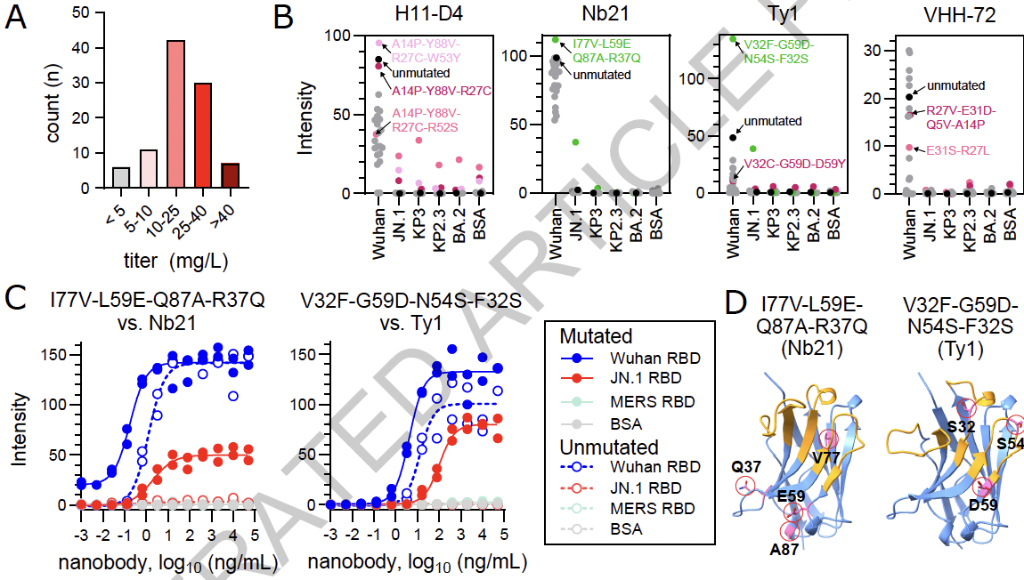 设计能结合新冠变异株(KP.3、JN.1)的纳米抗体,并实验验证其有效性。