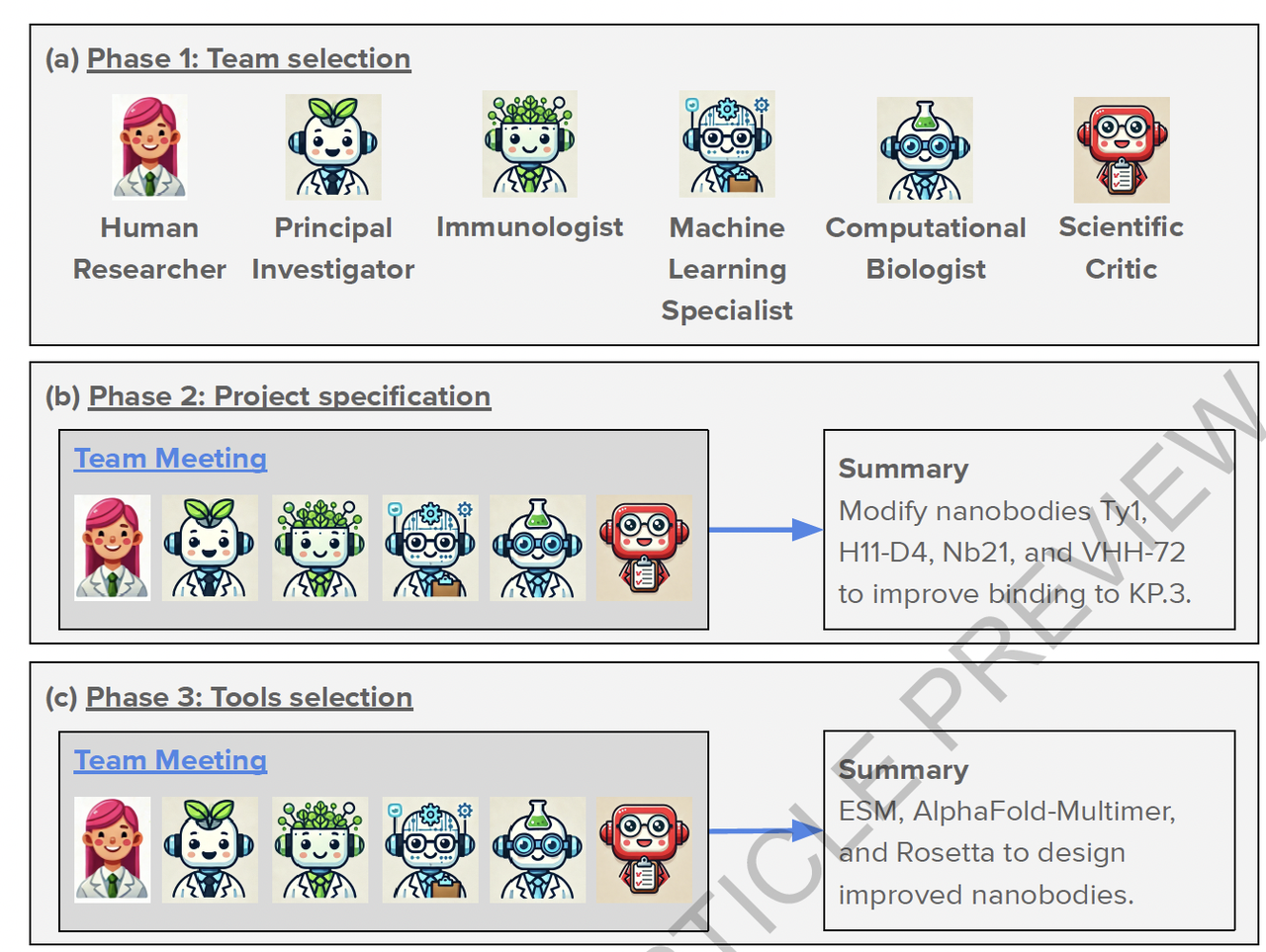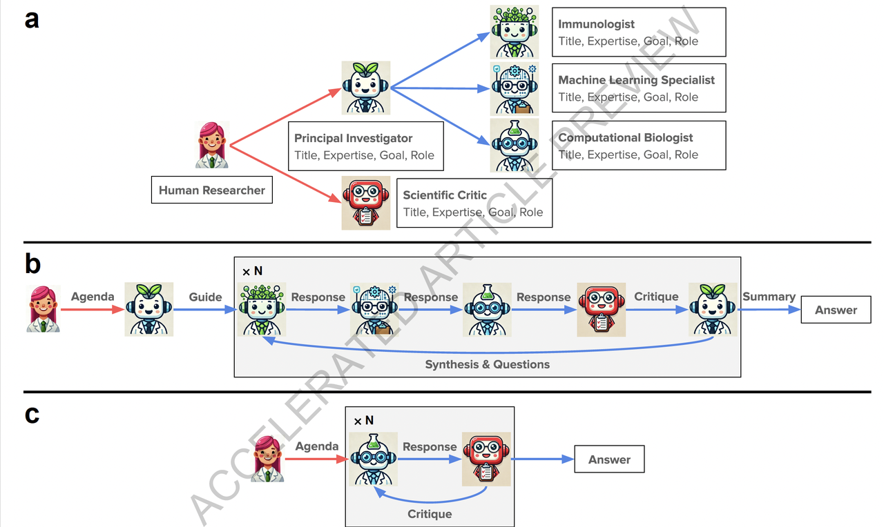 科学家 Agents:有免疫学家、计算生物学家、ML专家等;