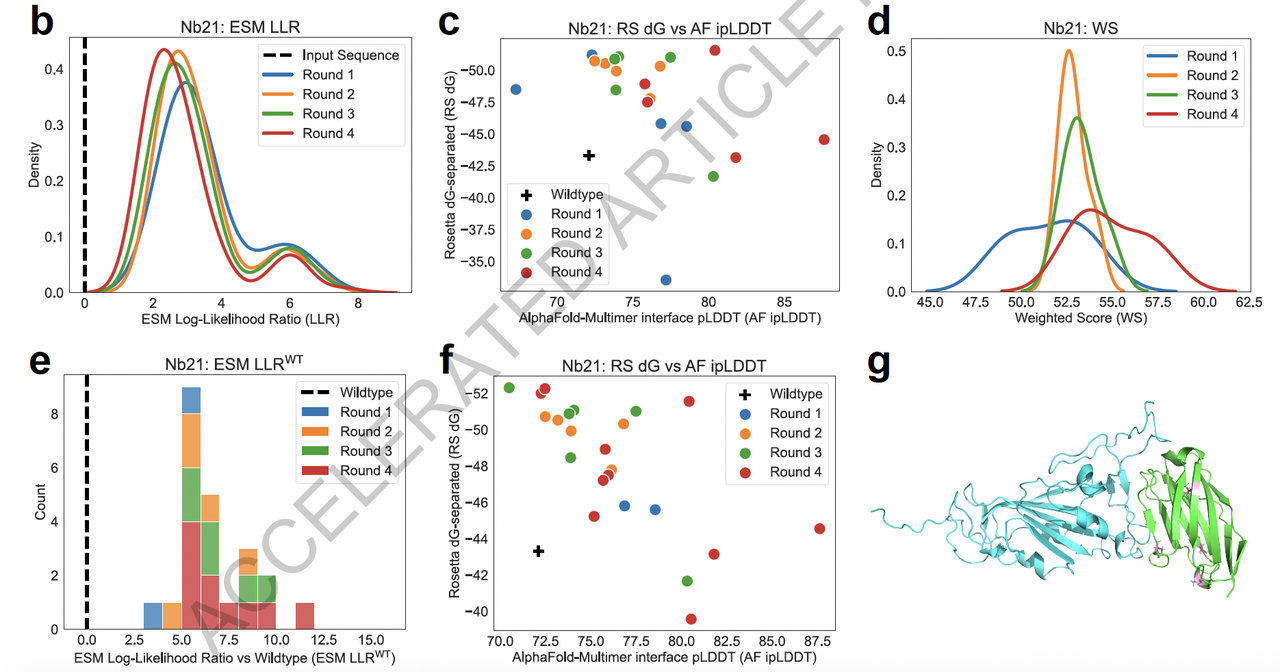 图3g 是模型预测的突变抗体与病毒蛋白结合结构图。