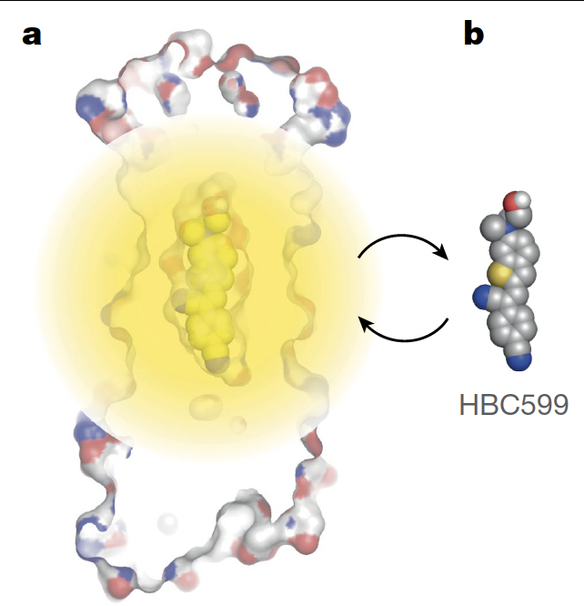 HBC599 分子紧紧嵌在口袋里,与预测的结合方式完全一致;