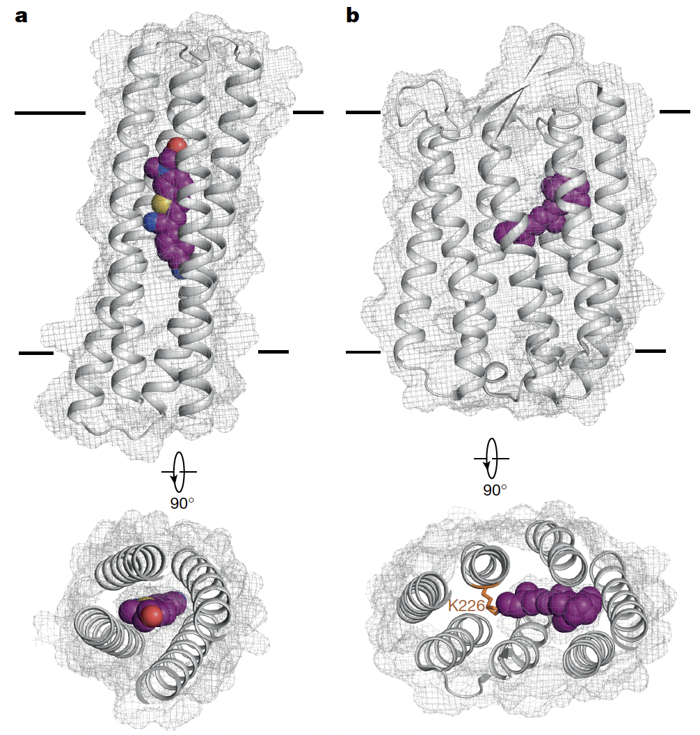 在疏水性膜环境中要形成稳定折叠已经很难,更别提在其中“精准凿出”一个能识别小分子的结合口袋;