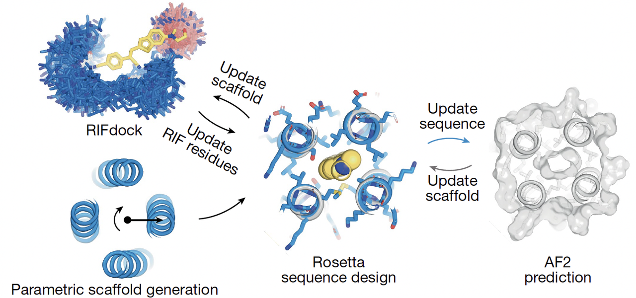 过去的 de novo 设计尝试,大多只能做到简单的金属离子结合(如血红素),而对小分子非共价识别几乎无人问津。