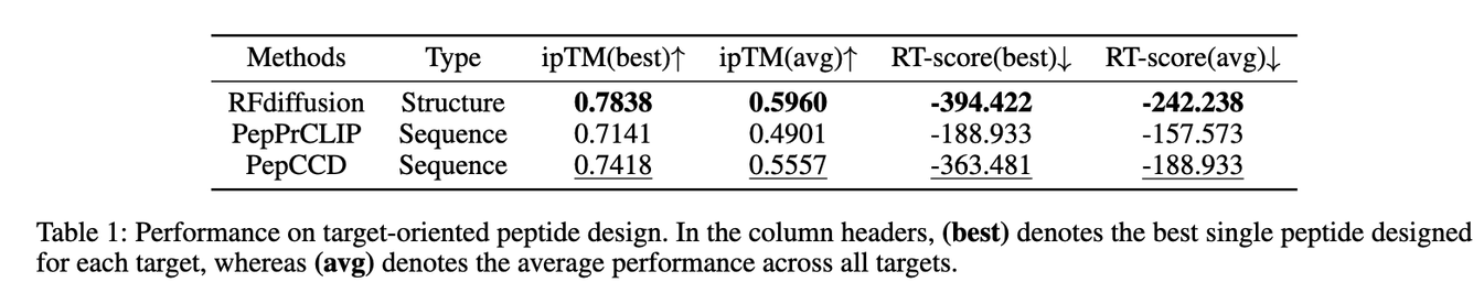 换句话说,PepCCD 证明了:即使只有序列输入,也能设计出高质量的多肽。