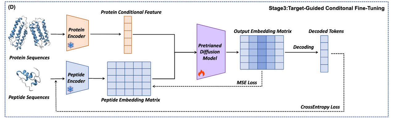这一阶段的意义在于:让蛋白和多肽共享语义空间,为后续的条件生成提供“桥梁”。