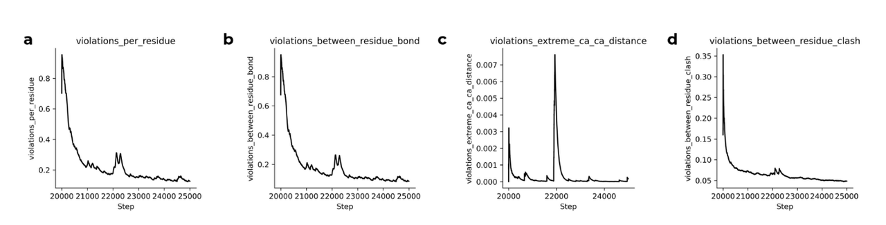 使用与 AlphaFold2 相同的损失函数与权重,专注于以下违规类型: