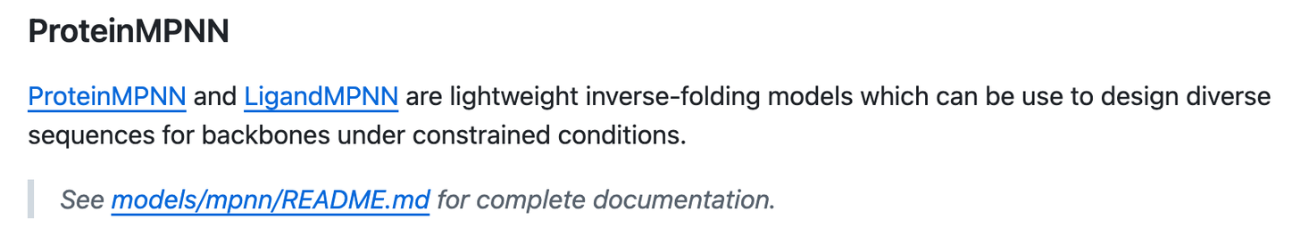 若想通过交互式的 Google Colab 笔记本了解如何使用 RFD3、MPNN 和 RF3 进行基础的蛋白设计流程,请参阅 IPD Design Pipeline 教程。