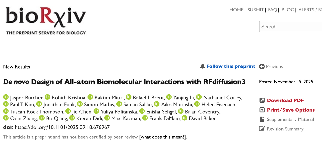 欢迎大家分享自己的使用体验,我也要去试试全新开源的RFdiffusion3!(感觉像是喜欢玩的游戏突然更新了)
