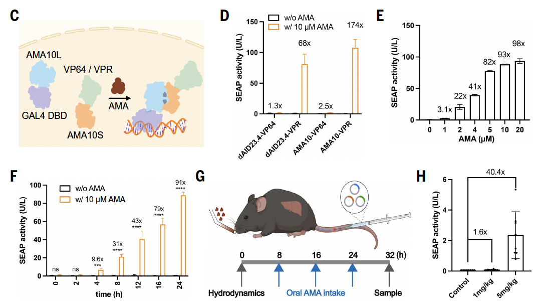 作者把这套系统引入小鼠体内,通过口服给药的方式,观察是否能在特定组织中启动预期的生物过程。
